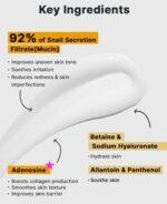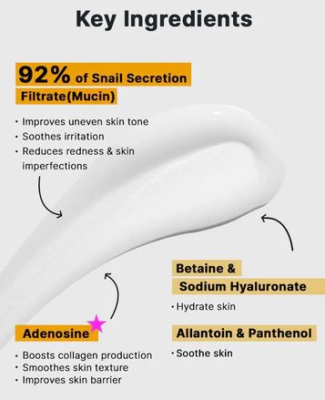 Formulated with 92% Snail Secretion Filtrate (Snail Mucin), COSRX Advanced Snail 92 All in One Cream creates a natural glow and helps your skin appear healthier by providing nourishment and moisture to the skin. The rich gel-type cream glides onto the skin, building a moisture barrier for long-lasting hydration. Snail Mucin is a well-known natural ingredient that soothes irritated skin and evens out complexions. Your skin will feel smooth and comfortable. Recommended for all skin types. Fragrance-Free.