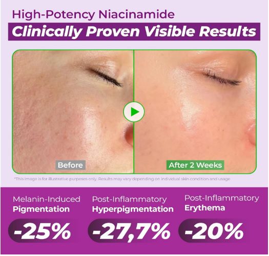 - 20% Niacinamide to visibly brighten skin tone and reduce dark spots