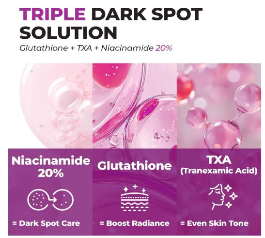 - Glutathione + TXA (Tranexamic Acid) for powerful hyperpigmentation care