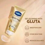 - Vaseline® Gluta-Hya combines the power of our GlutaGlow technology and Hyaluronic Acid. The GlutaGlow technology boosts the skin’s natural levels of glutathione to brighten the skin, while the Hyaluronic acid is known to provide intense hydration. This power duo works wonders on your skin, and it is 10x more powerful than Vitamin C^. Vaseline® Gluta-Hya Flawless Glow reduces dark spots for an even-toned skin and it is enriched with 10x Pro-Retinol+ known to help exfoliate the outer layer of skin. And that’s not all, this serum burst Lotion is lightweight, fast-absorbing, and non-sticky.
